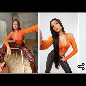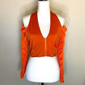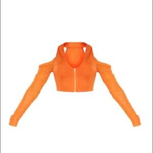 NWT PrettyLittleThing Size 8 Tangerine Woven Cold Shoulder Sexy LS Halter Top
