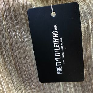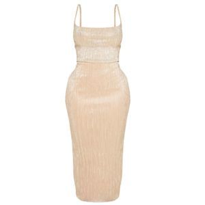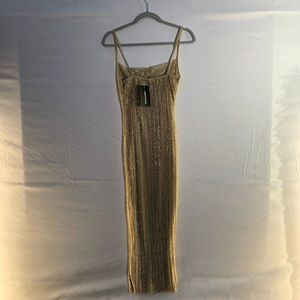 NWT PrettyLittleThing US 6 UK 10 Shape Pleated Gold Plisse Cowl Neck Midi Dress