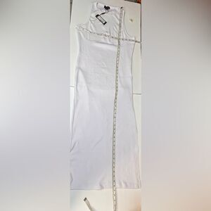 NWT PrettyLittleThing White Cup Detail Racer Split Midi Dress Sleeveless Size 10