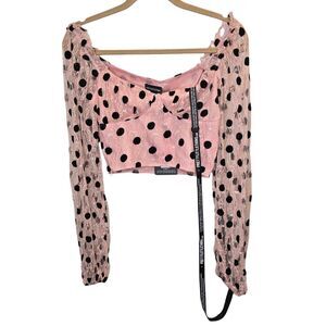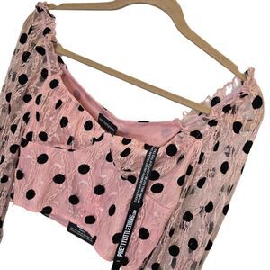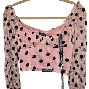 NWT PrettyLittleThing Women's Size 4 Lace Polka Dot Cropped Blouse Pink