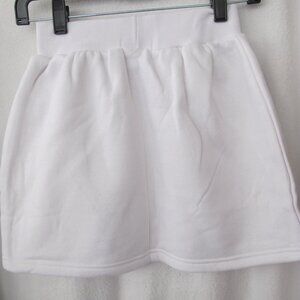 New with tags - PrettyLittleThing White Wrap Over Sweat Mini Skirt - UK size 8/EUR 36/US Size 4. 50% cotton/50% polyester. Solid white coloring. Wide elastic waistband.