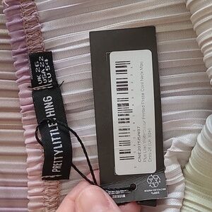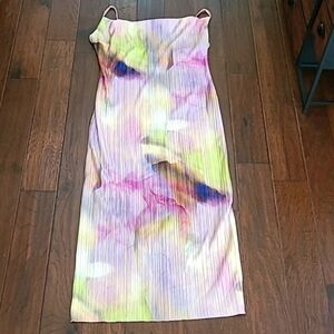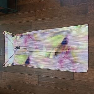 NWT PrettyLittleThing spaghetti strap colorful maxi dress with cowl neck size 22. I bought this for vacation but the straps aren't adjustable & it didn't work for me. Crinkle material with some stretch.