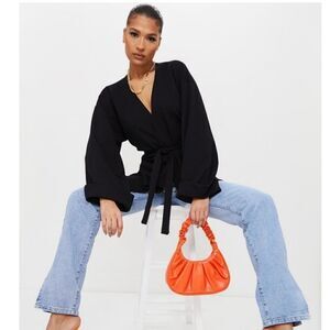 NWT PrettyLittleThing Black Belted Oversized Sleeve Blazer Sz. 0