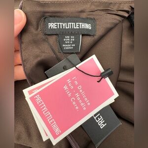 NWT PrettyLittleThings Chocolate Brown Boat Neck Satin Fishtail Midi Dress-US 6