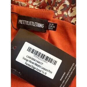 NWT PrettyLittleThings Orange Woven Metallic Leopard Print Size 16