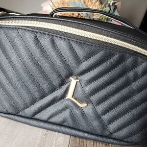 NWT Primark Black Cosmetic Bag with Quilted Texture and Gold Hardware Letter "L"