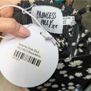 NWT Princess Polly Adrianna Mini Dress Black Daisy Print Floral Sundress
