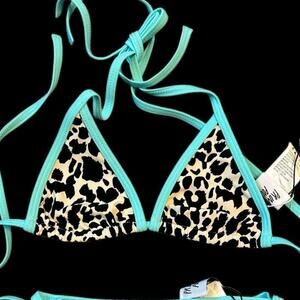 NWT Princess Polly Blaylock Leopard and Turquoise Triangle Bikini Top Size 4