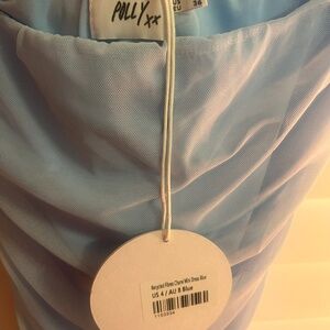 Never worn new with tags Princess Polly Charvi Mini Dress in a pale blue color, size 4. This is no longer available online - sold out! Slim fitting with stretcy mesh overly and ruching. Very flattering! Can be worn on or off the shoulder.