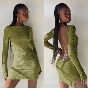 NWT Princess Polly Green Long Sleeve Open Back Ignite Mini Dress