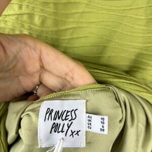 NWT Princess Polly Green Long Sleeve Open Back Ignite Mini Dress. Textured material. Fully exposed back. High neck. Stretch. Thumbholes. Lined. Polyester spandex blend. Going out, party. Size 6. Armpit to armpit: 15.5". Armpit to end of sleeve: 23". Length: 33". (875)