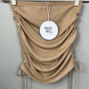 NWT Princess Polly Hayley Ruched Mini Skirt Brown Nude Ribbed Knit 6