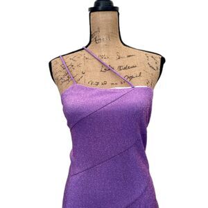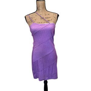 NWT Princess Polly Nancy Sparkle Mini Dress Purple Glitter Bodycon US Size 10
