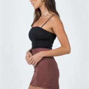 Elevate your evening look with this brown mini skirt from Princess Polly, perfect for cocktail occasions. Its A-line silhouette offer a sophisticated touch, while the high-waisted design ensures a flattering fit. Brand new with tags.