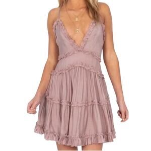 NWT Princess Polly The Dawning Mini Dress Mocha Pink Ruffle Hem Feminine Flirty