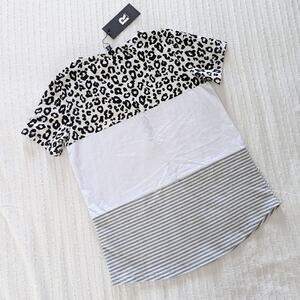 NWT Prinstory Tshirt Color Block Gray Cheetah size Small
