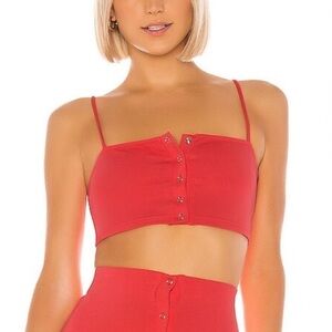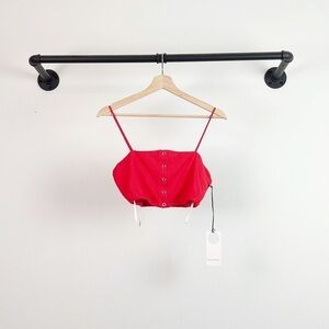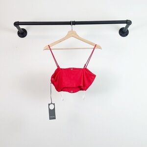 NWT Privacy Please Goldman Ribbed Snap Front Crop Top in Red