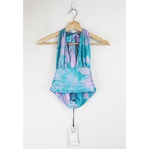 NWT Privacy Please Venice Halter Crop Top Lilac Turquoise Tie Dye Satin Small