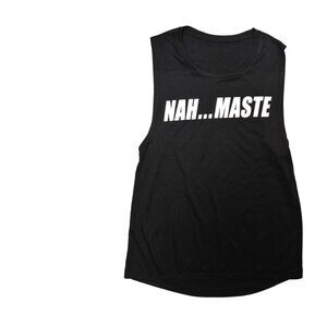 NWT Private S Party Graphic Yoga Nah Maste Namaste Muscle Long Tank Funny Black