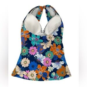 NWT Profile by Gottex Standard Rising Sun Halter Tankini Top Multi Blue