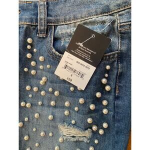 NWT Project Runway Distressed Blue Jeans Pearl Accents Womens 6 $59