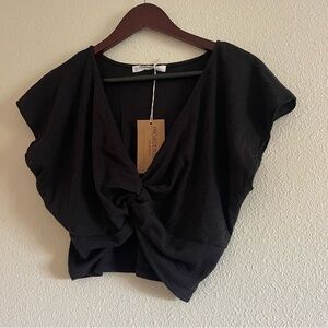 NWT Project Social T Black Criss Cross Front Open Tie Crop T Shirt Size Large