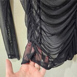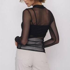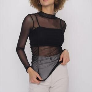 The Just Float Ruched Mesh Long Sleeve takes on casual chic with minimal effort. This long sleeve is made in a super soft and stretchy mesh fabric that moves with you. Featuring a mock neck silhouette with flattering front and back ruching. Complete the look with a cropped tank or sexy bralette (NOT INCLUDED) and just like that, you'll be date night ready.