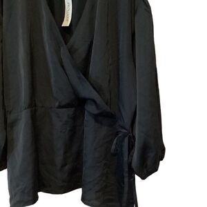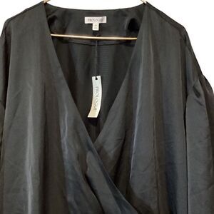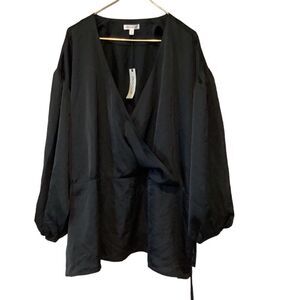 NWT Prologue Womens Blouse Black Faux Wrap 4X