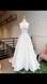 This was a sample dress from a Bridal boutique, never been worn down the aisle, quarter size hole in the tulle underneath the bottom of the train so it's on the bottom and not noticeable from the top, light dust marks on train