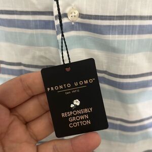 Crafted from 100% cotton, this shirt offers a luxurious feel and exceptional comfort. The modern fit design provides a sleek and tailored silhouette that is both stylish and flattering. Featuring a classic stripe pattern, this shirt adds a touch of sophistication to any outfit, making it perfect for both casual and formal occasions. With its versatile design and high-quality construction, the Pronto Uomo Button Up Shirt is a timeless essential for any modern man's wardrobe.