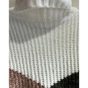 The NWT Proof Apparel Sweater in size small is a stylish and comfortable addition to any woman's wardrobe. Featuring a cowl neck and long sleeves, this pullover sweater is perfect for both casual and more formal occasions. Made from soft and cozy polyester knit fabric, it is ideal for all seasons and comes in a beautiful multicolor solid pattern. With a relaxed fit and oversized style, this sweater exudes a bohemian and colorful vibe, making it a versatile and chic choice for women looking for a fashionable and comfortable sweater option.