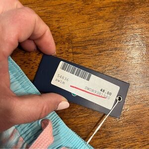 NWT Properly Tied Shordees Retro blue pink striped palm tree size 6 5 in inseam