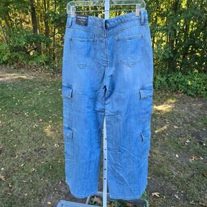 NWT Prosperity Cargo Jean Blue Utility High Rise Wide Straight Seam Detail sz 29