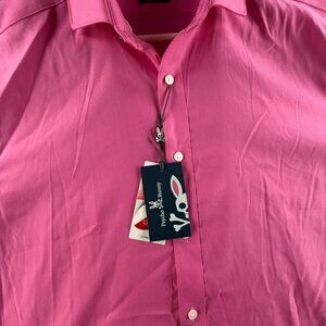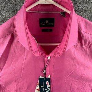 NWT Psycho Bunny Long Sleeve Pink Modern Fit 16 34/35 Button Up Shirt Stretch