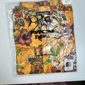 NWT Psycho Tuna Men's Orange Tropical Flowers Button Down Shirt Size M