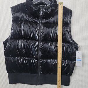 NWT Puffy Vest Womens CALVIN KLEIN Shiny Black Nylon Poly Size XL