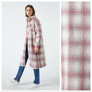 NWT. Pull&Bear Extra Long Plaid Overshirt/Coat with Button Chest Pockets Size M.