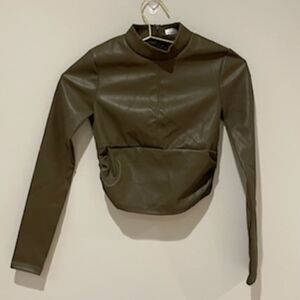 NWT Pull&Bear Olive Faux Leather Crop Sz. S