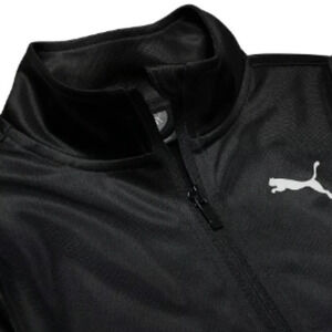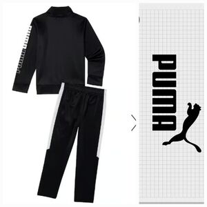 Stylish Puma tracksuit in black and white. Features logo detailing.