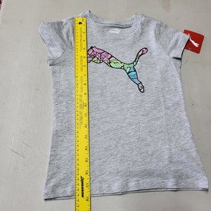 NWT Puma Girls Grey Short Cap Sleeve Crew Neck Graphic Print T Shirt Size 6 Top