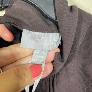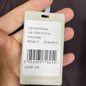 NWT! Pure Collection Women's High Neck Blouse Chocolate Brown LS Top!