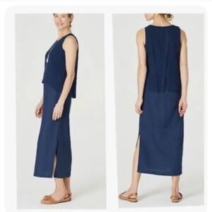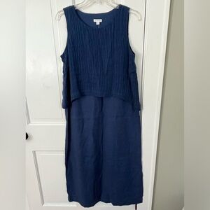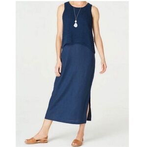NWT Pure Jill J.Jill 100% Linen Batik Blue Layered Maxi Dress Size Small Summer