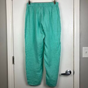 NWT Puro Lino Italy 100% Linen Turquoise Tiffany Green Pants Crochet Pockets S