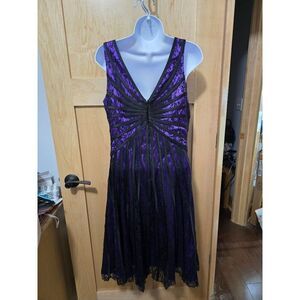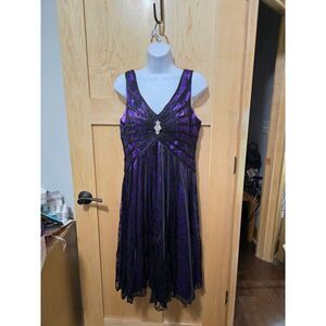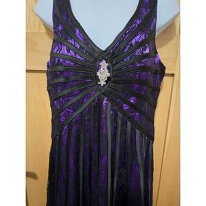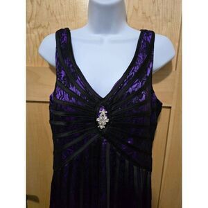 NWT Purple & Black Lace Sleeveless Dress With Jewelled Accent & Flattering Fit