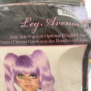 NWT Purple Dolly Bob Wig w/ Optional Ringlet Clips Leg Avenue Halloween Costume