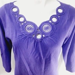 NWT Purple Embroidered Neckline Blouse Large Dressy Casual Boho Chic Top