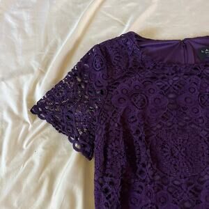 NWT Purple Lace Short Sleeve Shift Mini Dress Sz 6P