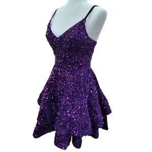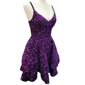 NWT Purple Neck Sequin Short Dress with 2 Tiered Skirt