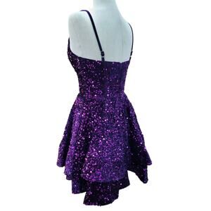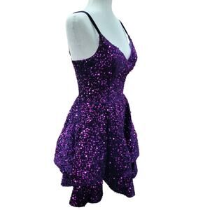 Flirty dress! Great cocktail dress for any occasion, including homecoming! Soft sequin dress, zipper back, adjustable straps. Size charts in photos.