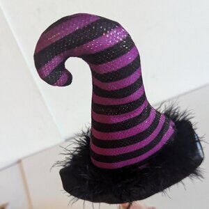 NWT Purple Striped Mini Witch Hat Floral Pick Ashland Halloween Decor Suess Goth